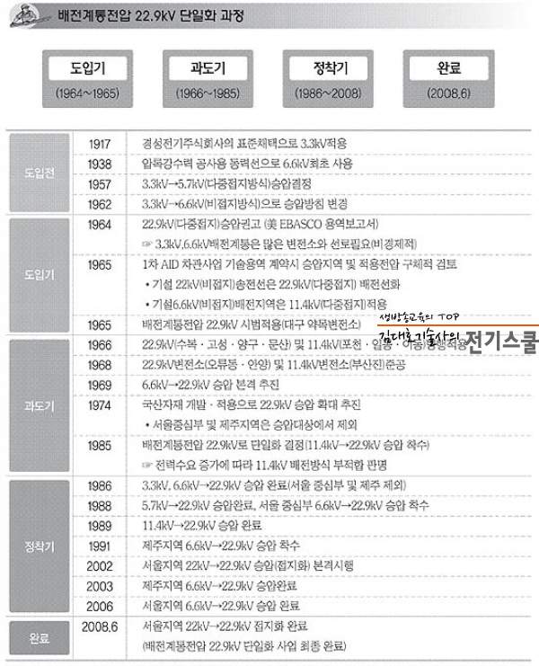 배전계통전압 단일화 작업을 시작한 이래 44년만인 지난 2008년 6월에 22.9kV로 단일화 됐다.