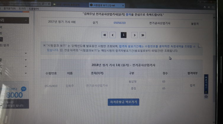 저는 어영부영 지방대다니다가 군대갔다오고나서 1년정도 돈모으고 여행다니다 다니던 대학교를 자퇴하고 1년정도를 공부하여 전기공사산업기사를 취득하였습니다. 고등학교때도 공부를 잘하지도 못했고 대학교에서도 마찬가지여서 이번에 시험준비를 하는데 있어 많은 두려움과 어려움이 있었습니다.그리고 무엇보다 저의 게으른 성격과 나태함이 가면갈수록 심해져서 제 자신이 너무 힘들었습니다. 하지만 김대호교수님의 수업은 다른 인강이나 학원과는 달리 우리가 공부를 안하는것 같으면 바로 질책을 하셔서 제가 공부를 포기하지 않을수 있었던 이유중 하나였습니다. 교수님 수업의 특별한 장점중 하나는 아무리 기본적인 거라도 반드시 물어보라고 말씀하시는 자세인 것 같습니다. 보통 다른 강사는 이정도는 설명안해도 되겠지 하는것도 모르면 반드시 물어보라고 하셔서 저는 정말 1+1같은 기본적인 질문을해서 도움을 많이 받았습니다. 물론 교수님 수업을 수강해도 합격못하는 사람 있습니다. 하지만, 제 생각은 평소 카카오톡으로 질문을 성실히하고 생방송때에 참여를 열심히한 사람들은 거의다 합격한 것으로 기억합니다. 물론 그래도 합격못하는 사람이 있을수도 있지만, 자신이 정말 열심히 하였다 생각하면 이번이 아니라 다음회차로도 합격할 것이라 저는 믿습니다. 끝으로 정말 어려운 환경속에서 열심히 공부하셔서 자격증을 취득하셔서 자신들의 꿈을 이루는 사람들이 많은것을 합격수기를 보고 알게되었는데 여러분들도 노력하셔서 모두 합격하셨으면 좋겠습니다.