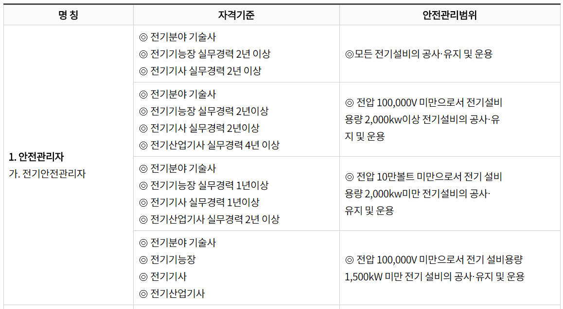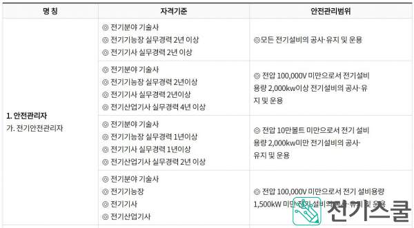 전기안전관리자 선임기준