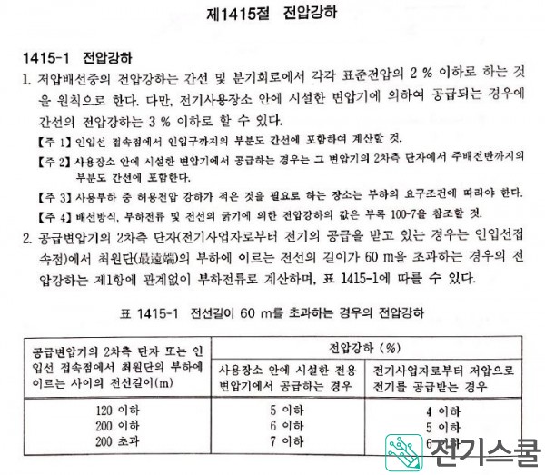 내선규정 전압강하 표준전압의 2%