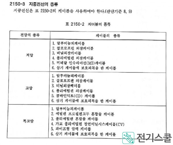 내선규정 400V 미만 시설장소와 배선방법 / 400V 이상 시설장소와 배선방법
