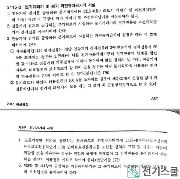 내선규정 전동기용 보호장치의 시설