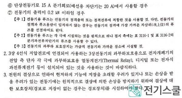 내선규정 전선을 보호하는 과전류차단기의 정격전류 / 2.5배