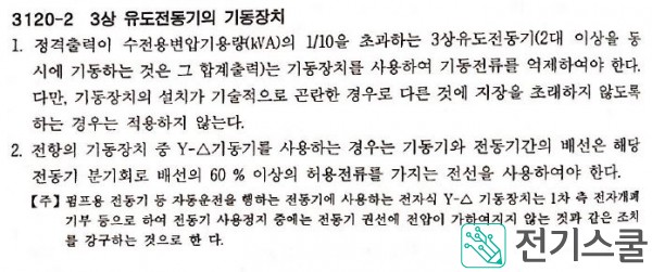 내선규정 전동기용 간선의 굵기 / 전등 전동기 병용하는 경우 간선의 굵기 / 간선의 과전류차단...