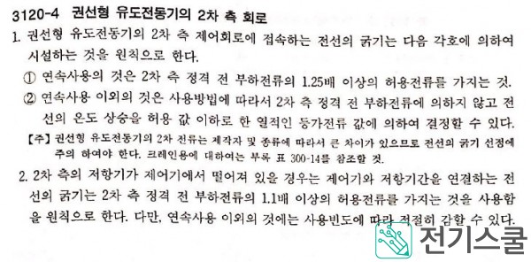 내선규정 전동기용 간선의 굵기 / 전등 전동기 병용하는 경우 간선의 굵기 / 간선의 과전류차단...