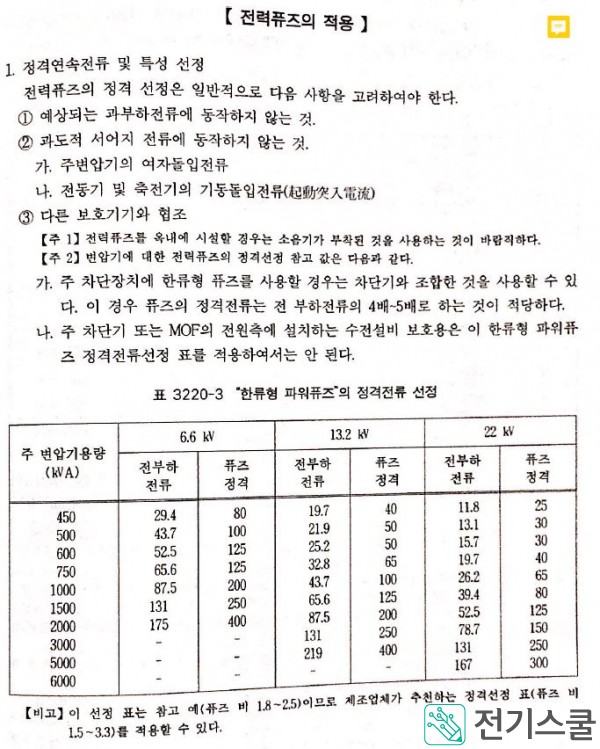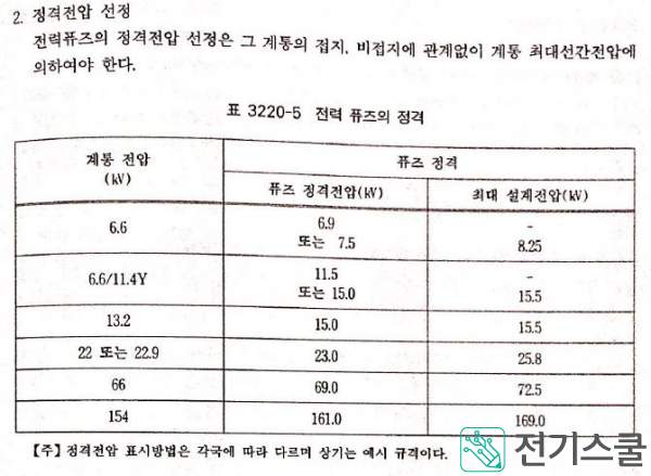 내선규정 전력퓨즈의 적용과 전력퓨즈의 선정 / 퓨즈의 정격전압