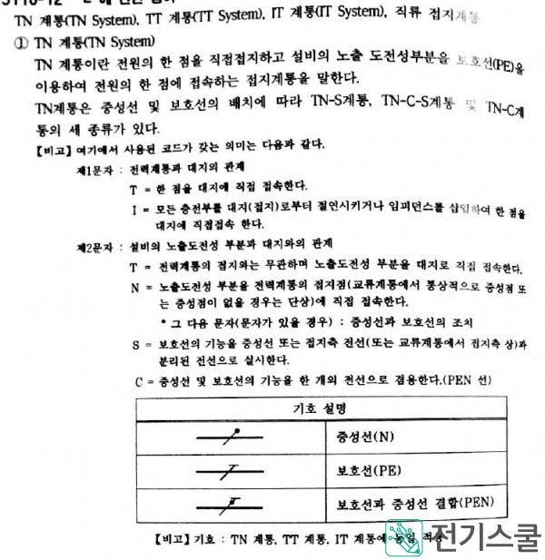내선규정 접지계통TN TT IT 문자의 의미와 중성선 보호선의 기호