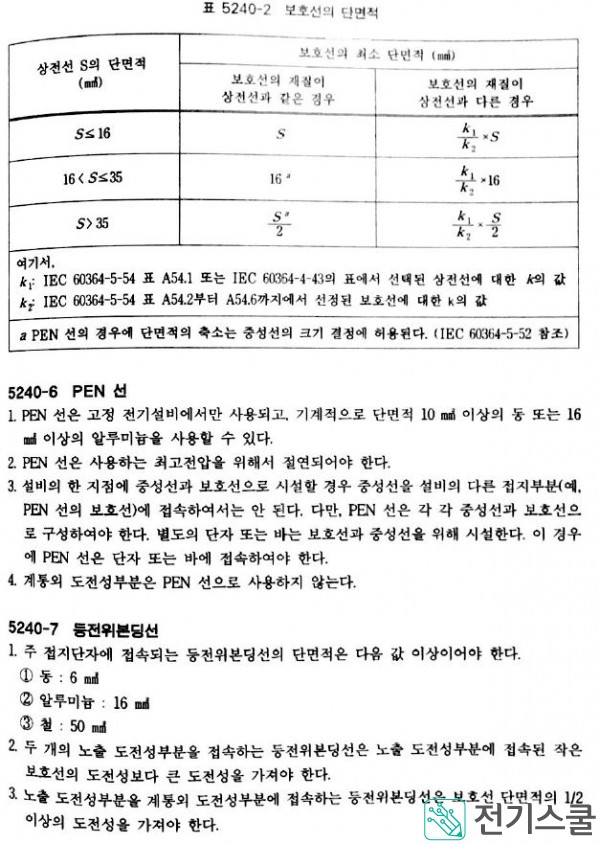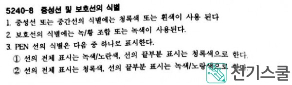 내선규정 보호선의 종류 / 보호서의 굵기 / 보호선의 색별표시
