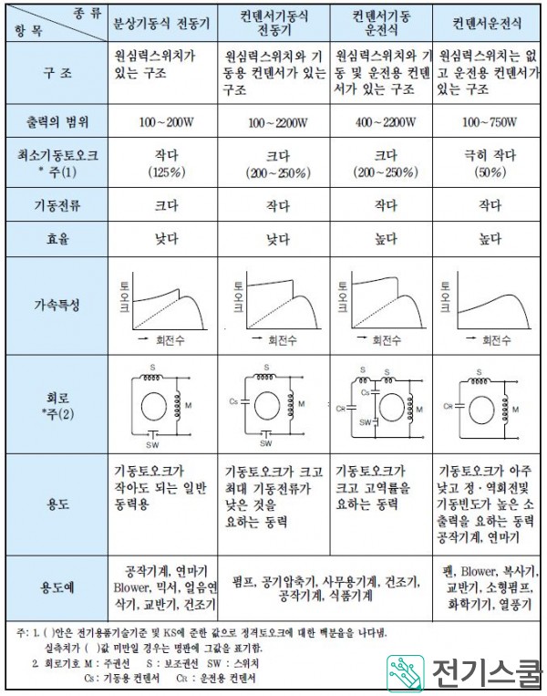 | 단상유도전동기 종류별 특징 | 학습자료 |