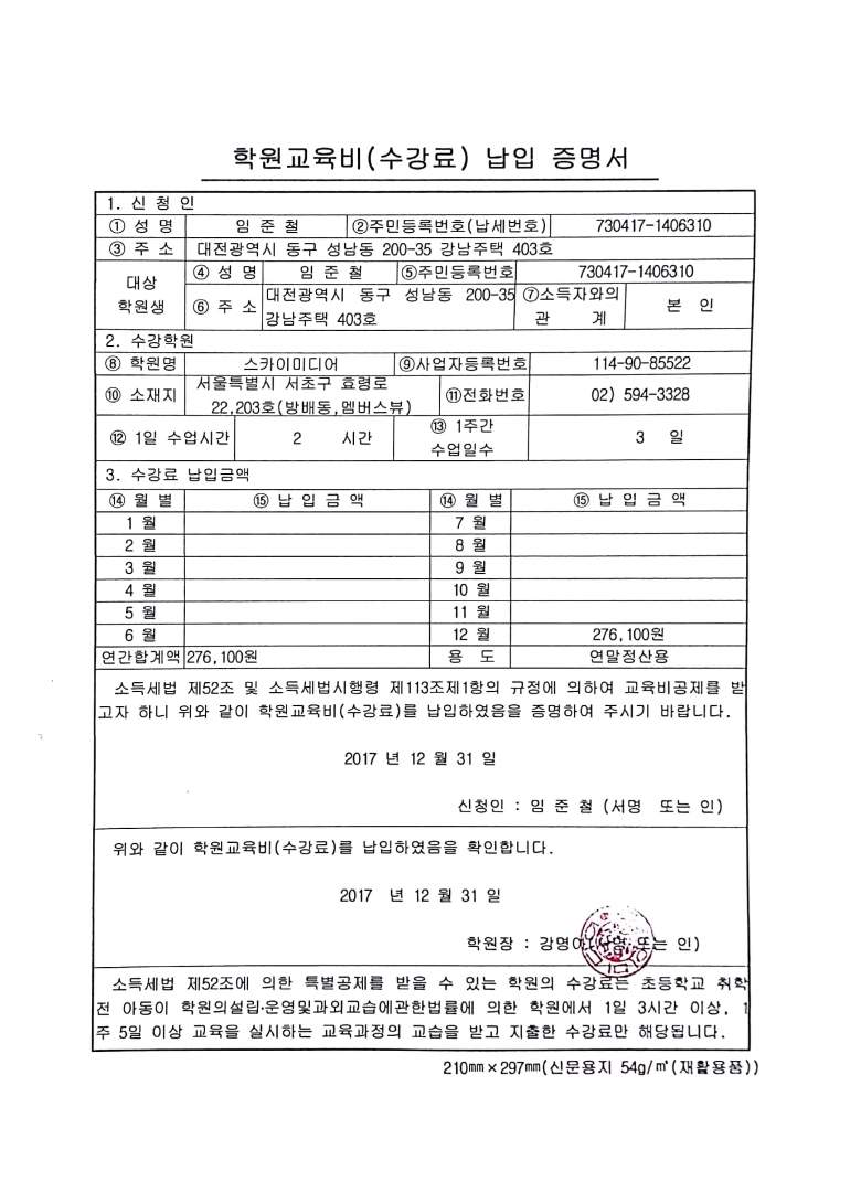 사업자등록번호 : 114-90-85522 스카이미디어(교육청 평생교육시설) 개인정보관리책임자 : 강명아