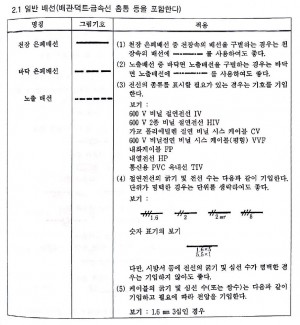 내선규정 배관 배선 기호 (천장은페배선/노출배선/바닥은폐배선)
