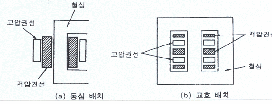 교호배치 / 동심배치 / 변압기 권선의 배치