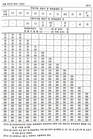과전류차단기 정격전류의 종류