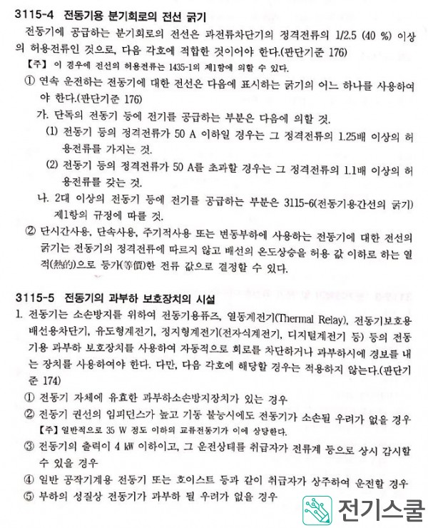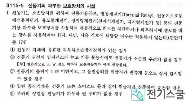 전동기용 과부하 보호장치의 시설규정