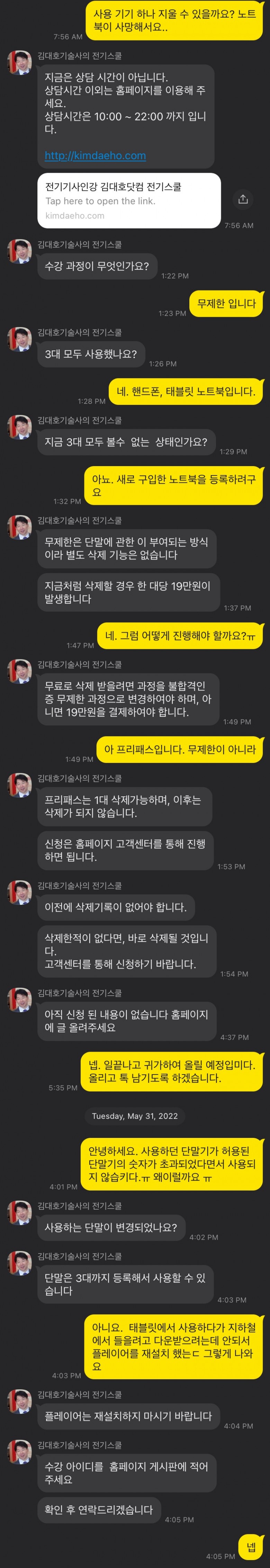 기기 변경등이 진행되면 단말 초기화 요청을 해주세요.