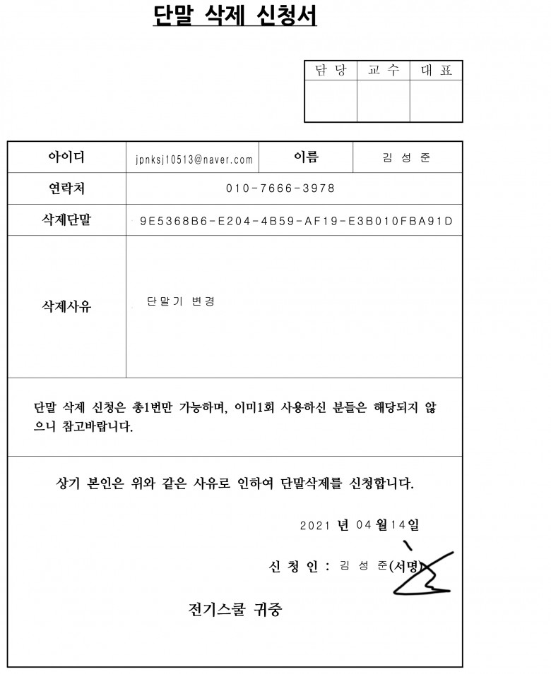 기기 변경등이 진행되면 단말 초기화 요청을 해주세요.