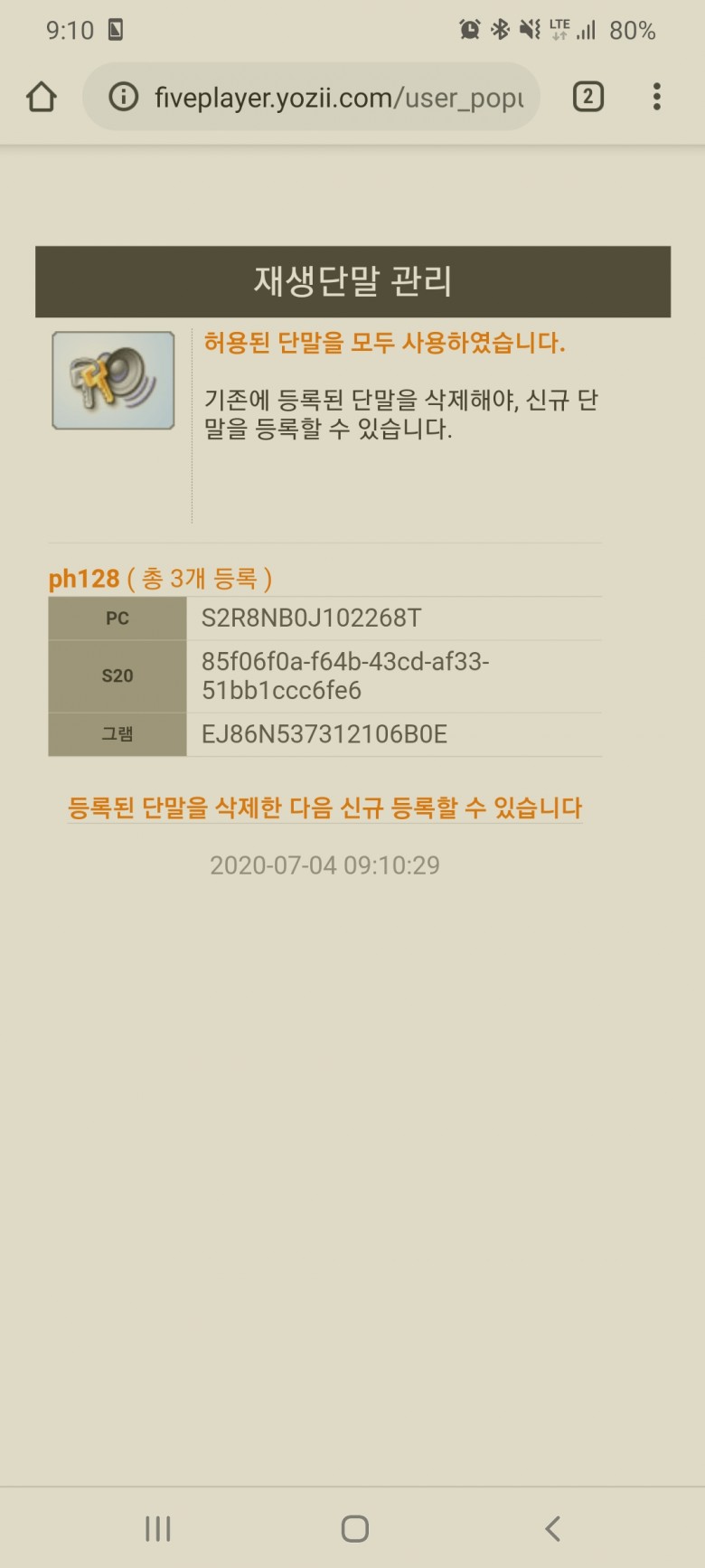 기기 변경등이 진행되면 단말 초기화 요청을 해주세요.