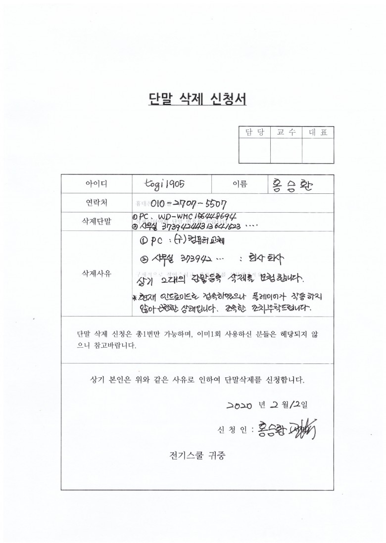 기기 변경등이 진행되면 단말 초기화 요청을 해주세요.