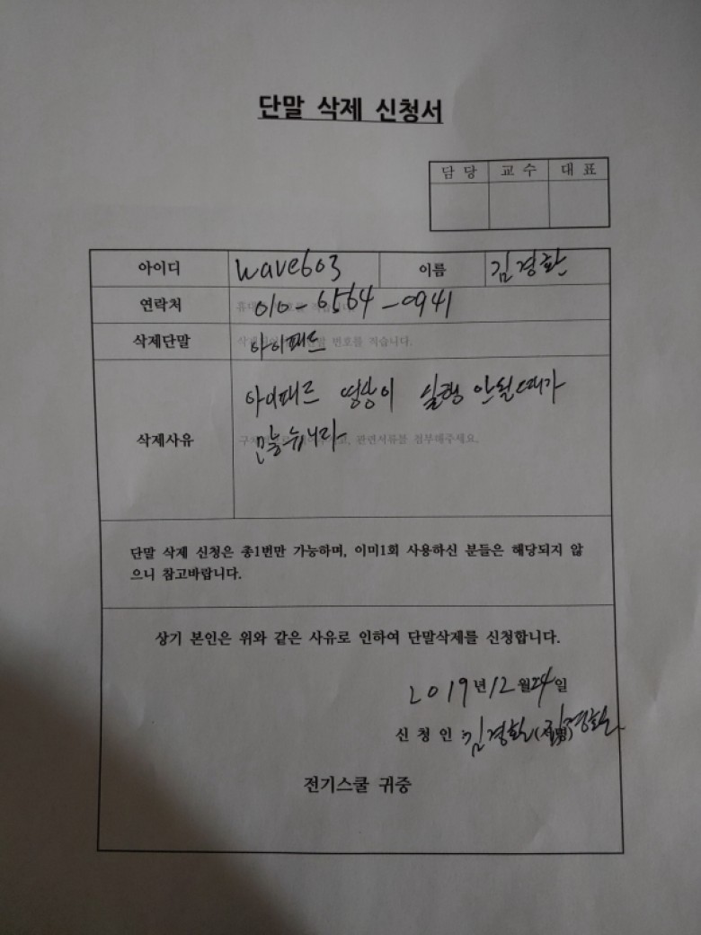 기기 변경등이 진행되면 단말 초기화 요청을 해주세요.