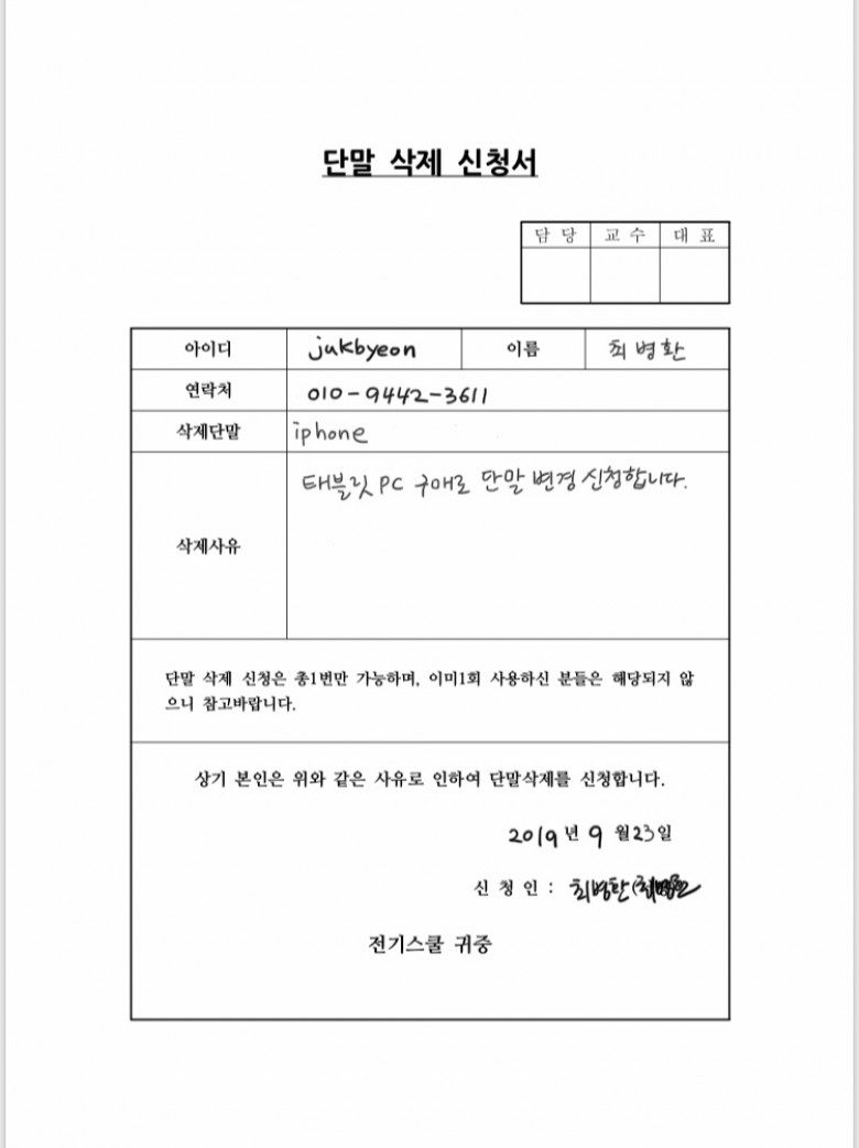 수료확인 요청서입니다