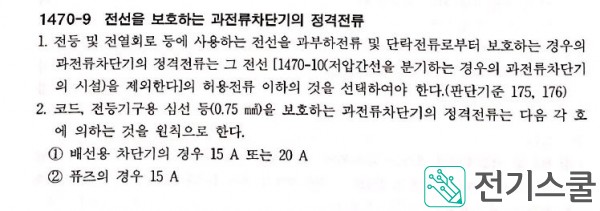 내선규정 전선을 보호하는 과전류차단기의 정격전류 / 2.5배
