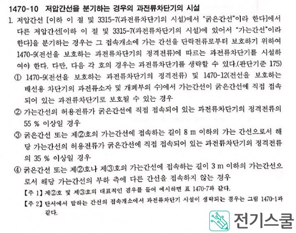 내선규정 저압간선을 분기하는 과전류차단기의 시설 / 55% / 35% / 과전류차단기 생략