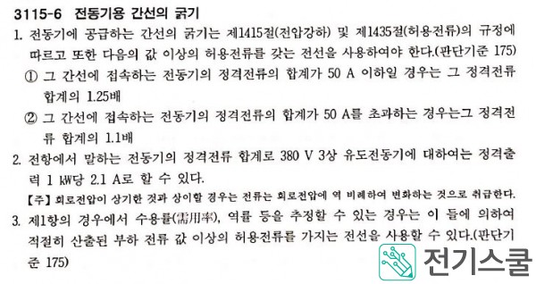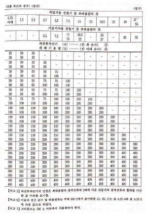내선규정 전동기용 간선의 굵기 / 전등 전동기 병용하는 경우 간선의 굵기 / 간선의 과전류차단...
