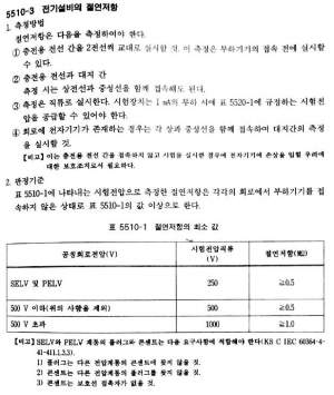 내선규정 절연저항 2019개정 / 저압전로의 절연성능