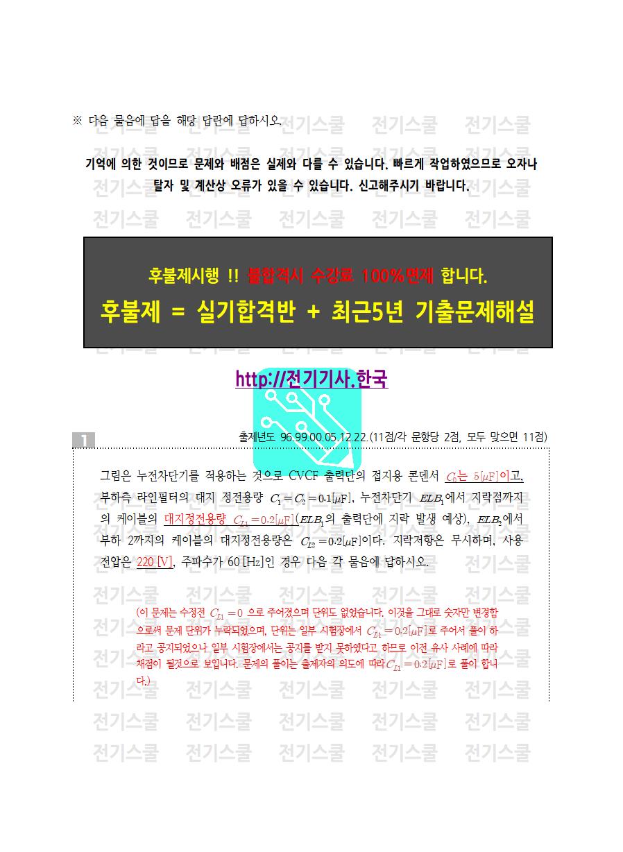 2022년 제1회 전기기사실기 문제해설 / 복원