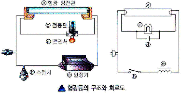 ① 형광등의 구조 : 방전 현상과 형광 작용을 이용하는 조명 기구