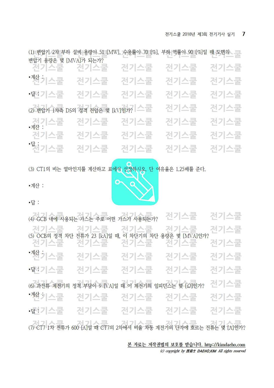 2018년 제3회 전기기사 실기 문제복원 및 해설 <4차 최종본>